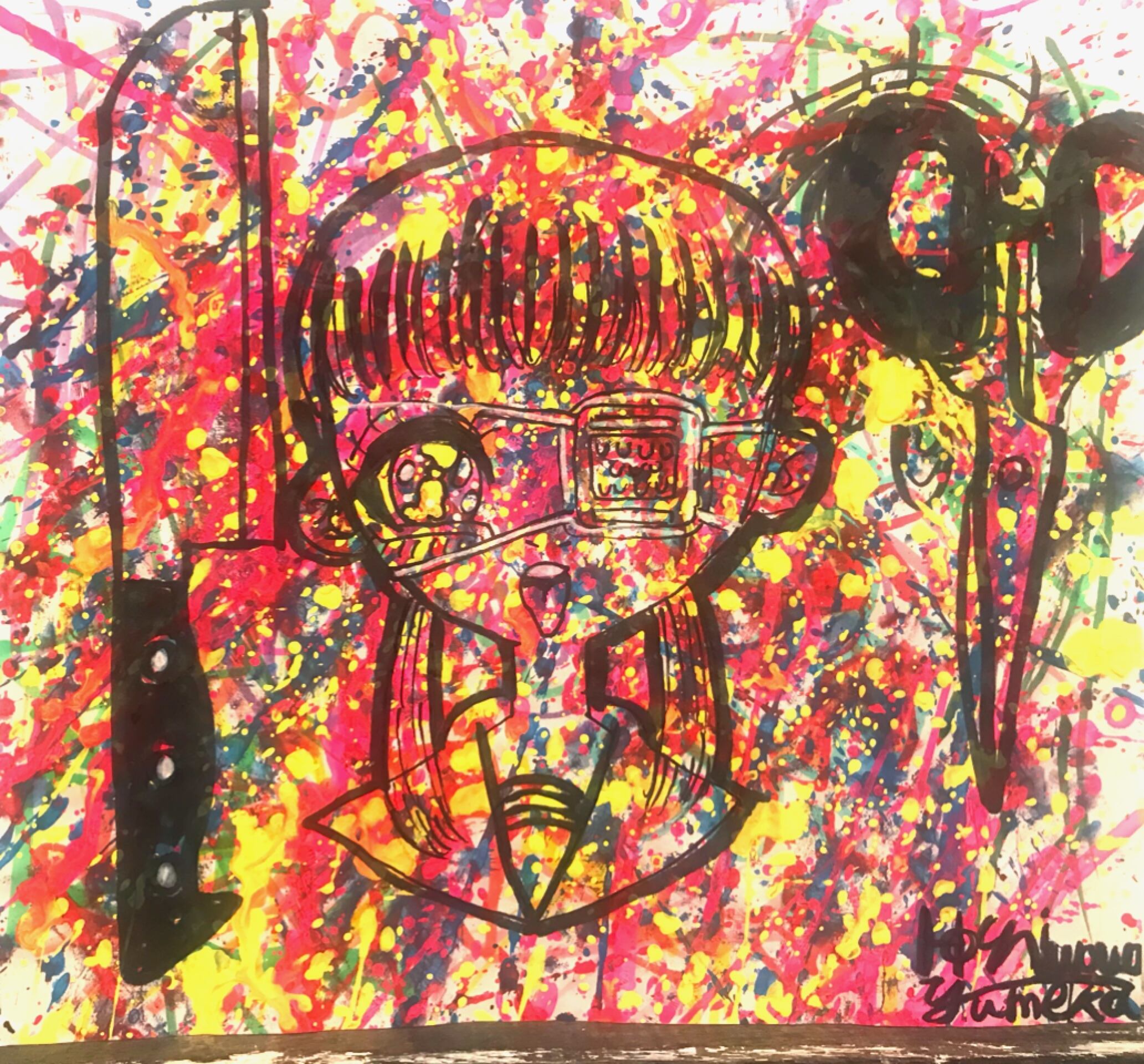 紙にアクリル絵具をマーカーを使用して描いたドローイングです。